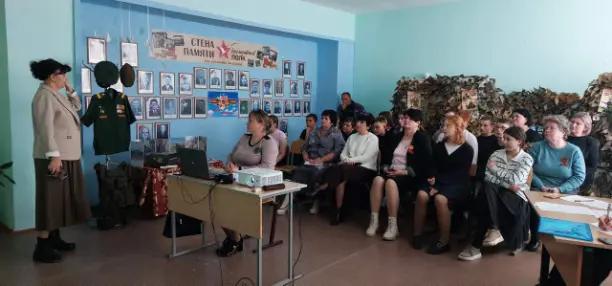 6 ноября 2025 года на базе МКОУ "Луговопролейская СШ" прошло мероприятие "Помним. Гордимся. Чтим", посвященное Году защитника Отечества. Библиотекарь Луго-Пролейской поселенческой библиотеки Михайличенко Л.М. подготовила и провела мероприятие "Помним. Гордимся. Чтим". Она рассказала о героях- земляках, участниках Великой Отечественной войны, героях СВО, были представлены фото, видео материалы. На мероприятии выступили: директор МКОУ "Луговопролейскакя СШ" Никитина Н.А., глава Луговопролейского сельского поселения Потехина Л.В.