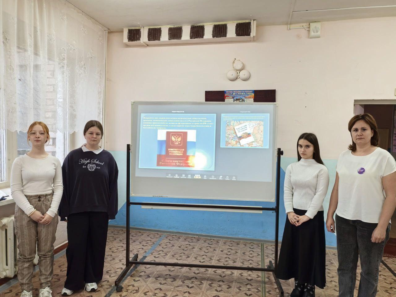 12 декабря - День Конституции. Один из важнейших праздников нашей страны - День Конституции. Этот день символизирует не только основные права и свободы каждого гражданина, но и нашу общую ответственность за будущее общества. Советник директора по воспитанию Чеснокова Е.П. совместно с методистом по воспитательной работе Никифоровой Г.В. организовали и провели традиционную общешкольную линейку, в рамках которой ученики обобщили и систематизировали знания об основах конституционного строя Российской Федерации. На линейке директор СДК Чеснокова Н.И. поздравила ребят и вручила брошюры "Конституция РФ" активным старшеклассникам.