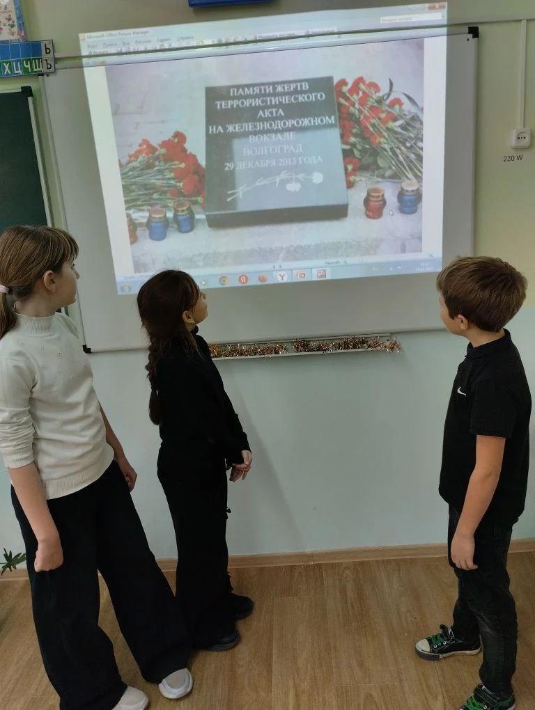 среде, а также формирования духовно-нравственных ценностей и моральных установок. В 1-4 классах прошли уроки на тему памяти жертв террористического акта на железнодорожном вокзале Волгоград 29.12.2013, в 8-11 классах интерактивные уроки "Что мы знаем о терроризме?". На уроке с ребятами провели упражнения-ассоциации по теме терроризм, узнали и обсудили значения терминов и слов, вместе составили ряд правил культуры потребления негативной информации.